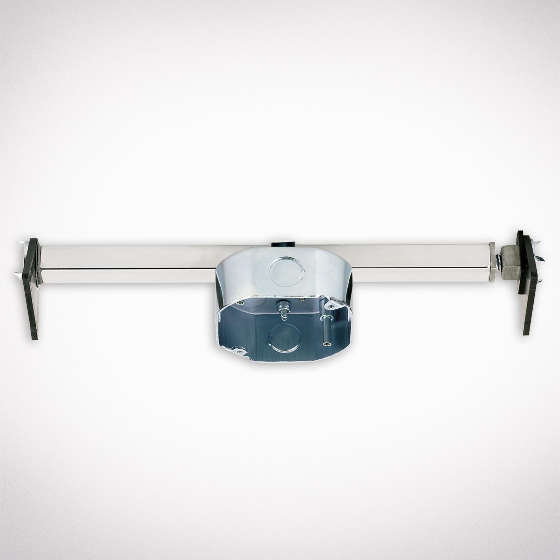 A ceiling fan brace allows you to mount an electrical box between two ceiling joists without the need to access the attic.